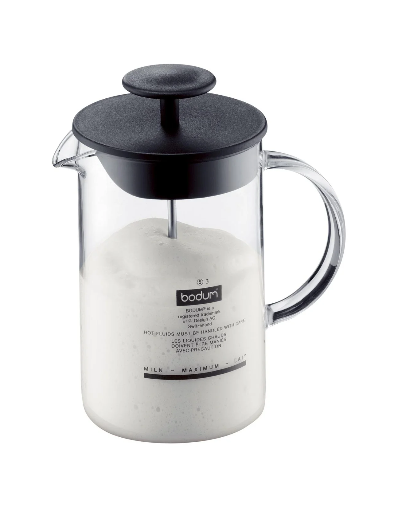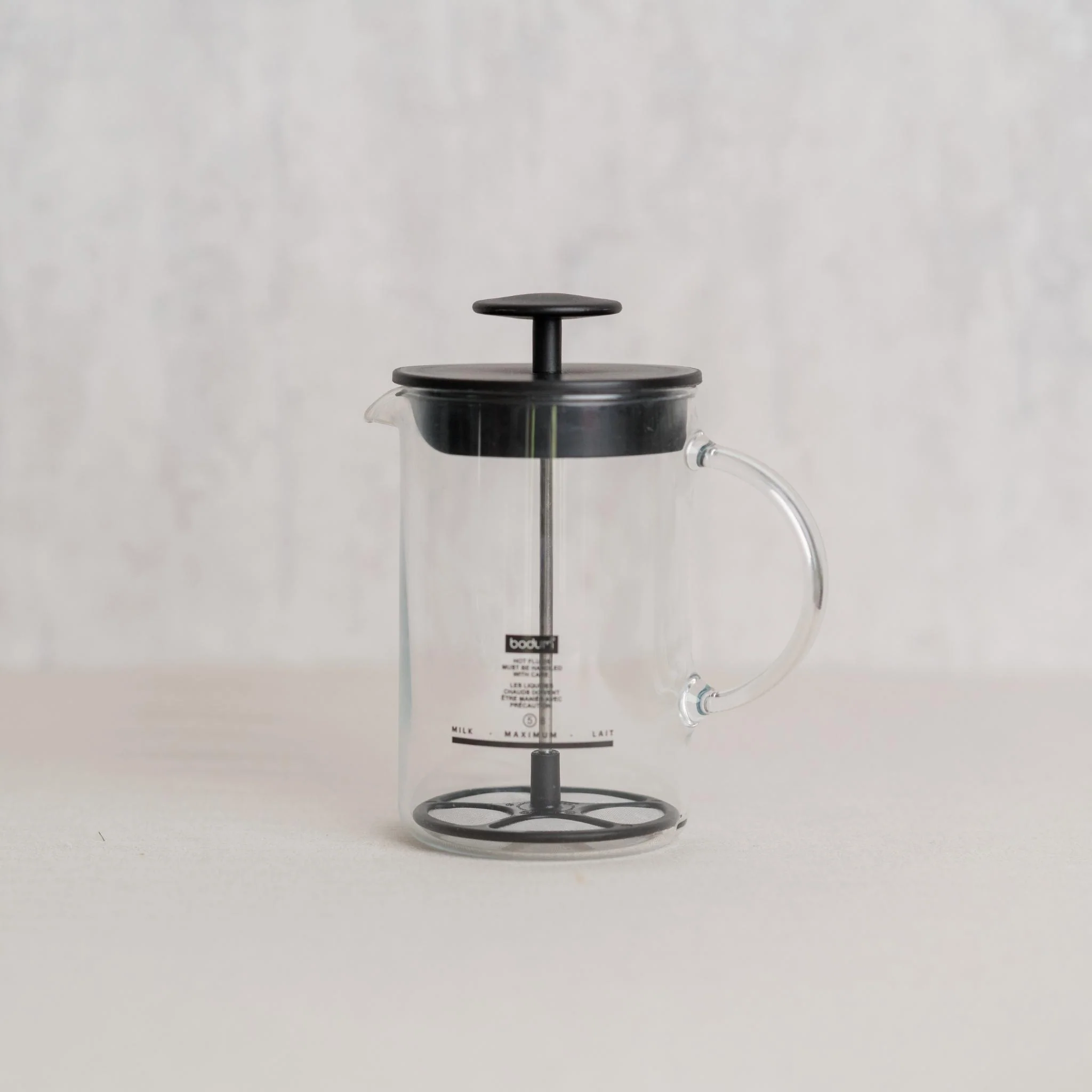 BODUM LATTEO MILK FROTHER WITH GLASS HANDLE 0.25L, 8OZ BLACK