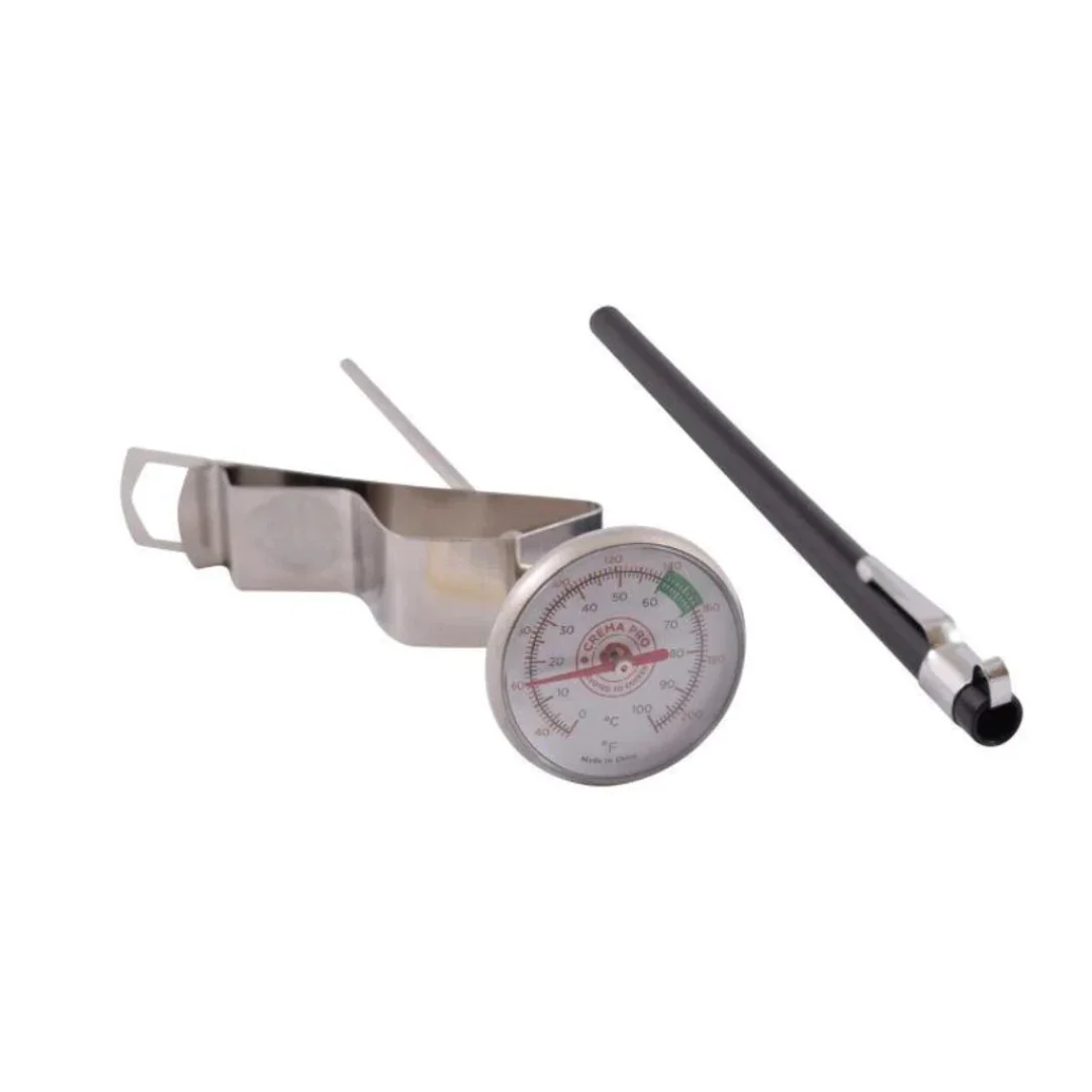 Dual dial thermometer with clearly marked optimum frothing zone indicator and 140 mm stem.