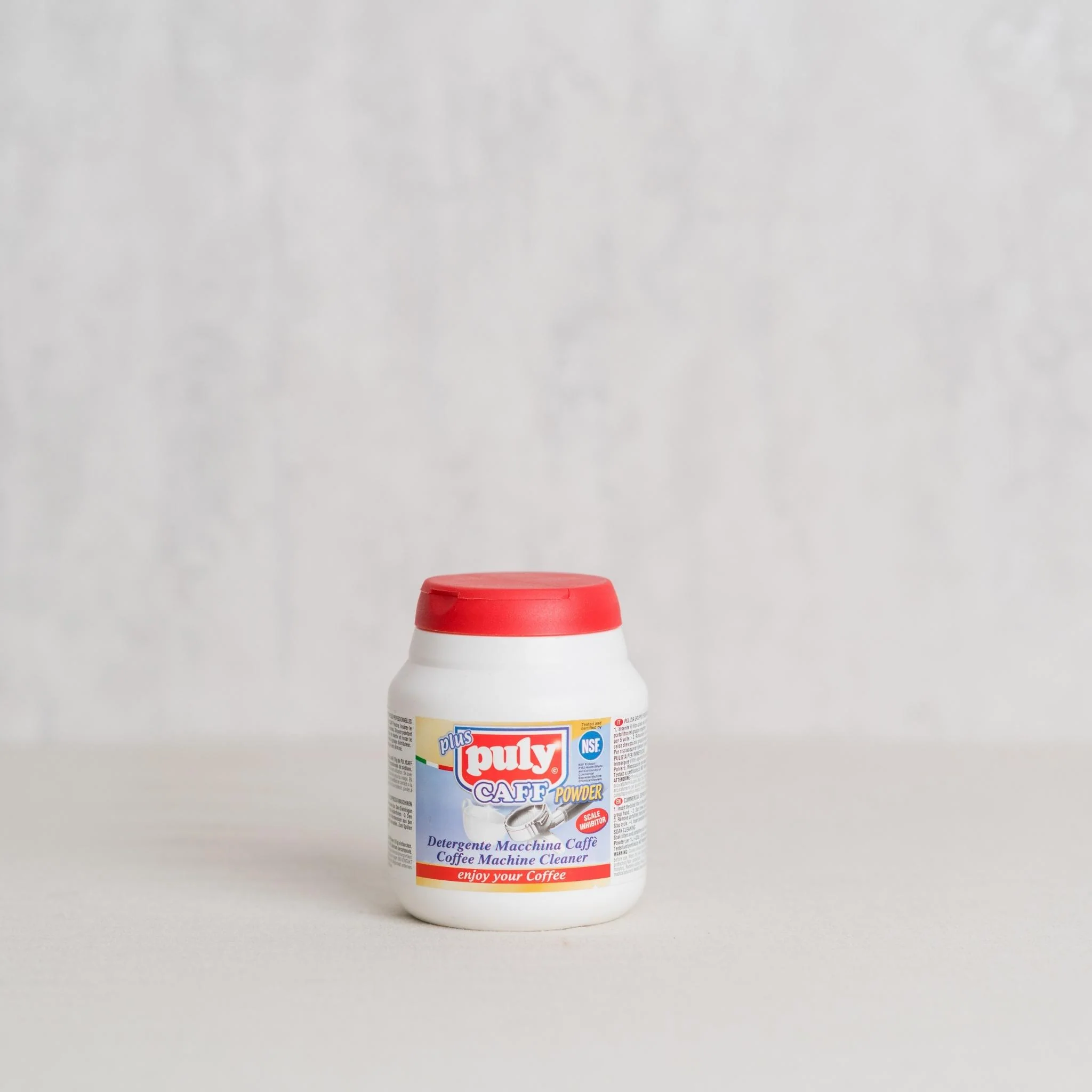 The Puly Caff Scale Inhibitor is a cleanser for use with coffee, espresso, and cappuccino makers. Easy to use, this coffee machine cleaner also descales the appliance, and the special formulation ensures that the coffee maker remains in peak condition. The Puly Caff Espresso Machine Cleaning Powder formula leaves the appliance spotlessly clean but does not leave any residues behind.