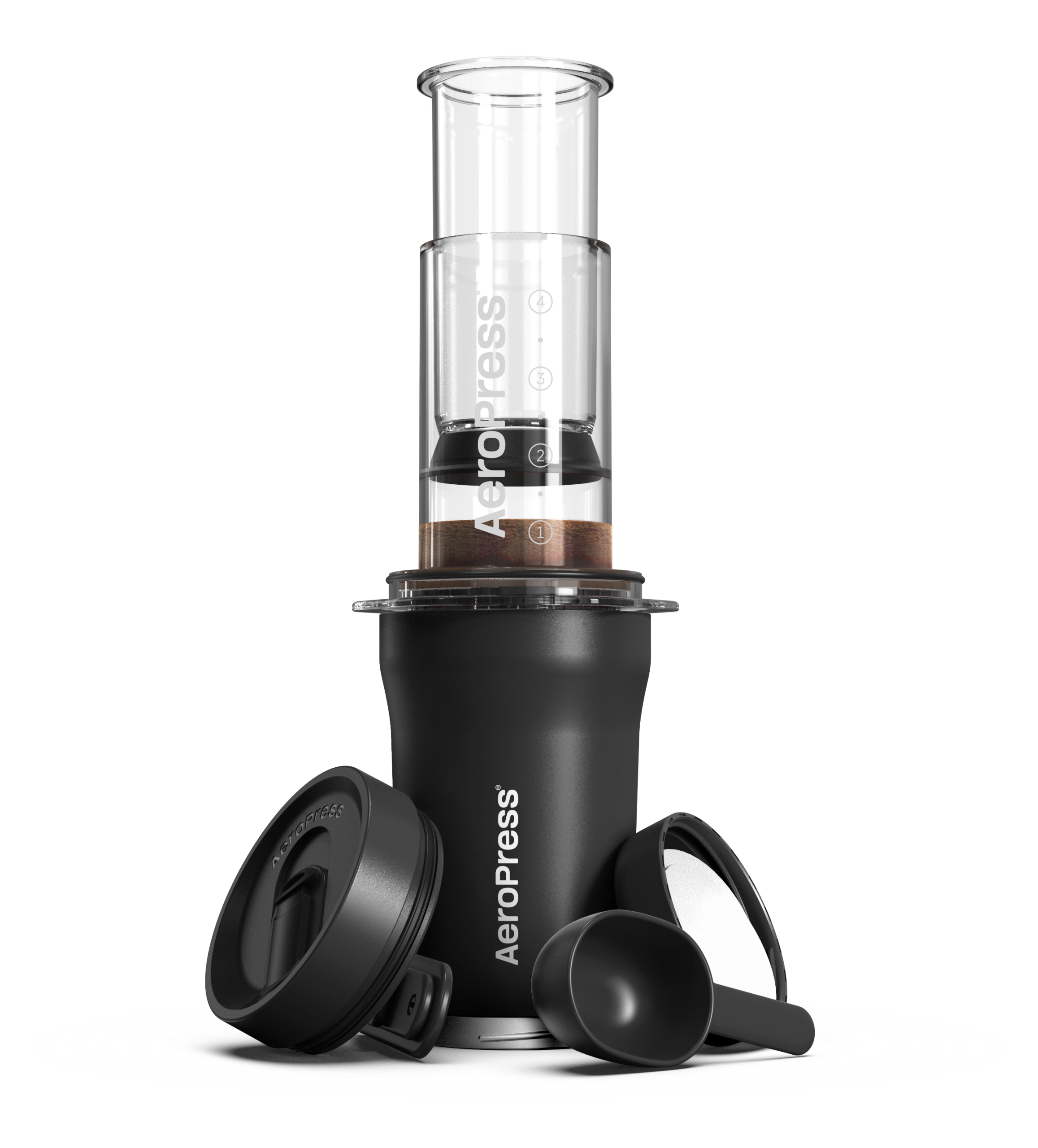 The AeroPress Go Plus is a complete travel coffee system — you can unpack it, brew our velvety smooth, signature brew and repack the press back into the custom tumbler that doubles as a storage container – all in about 2 minutes .  It brings the convenience and one of a kind flavor AeroPress is known for to the car, office, campground, hotel, vacation rental or wherever adventure takes you.