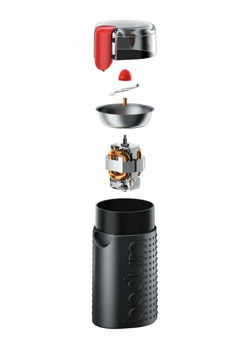 The BODUM BISTRO Electric Coffee Grinder uses a strong, durable stainless steel cutting blade that spins at a precise RPM to take coffee beans from coarse to fine quickly and efficiently for fresh brewing.