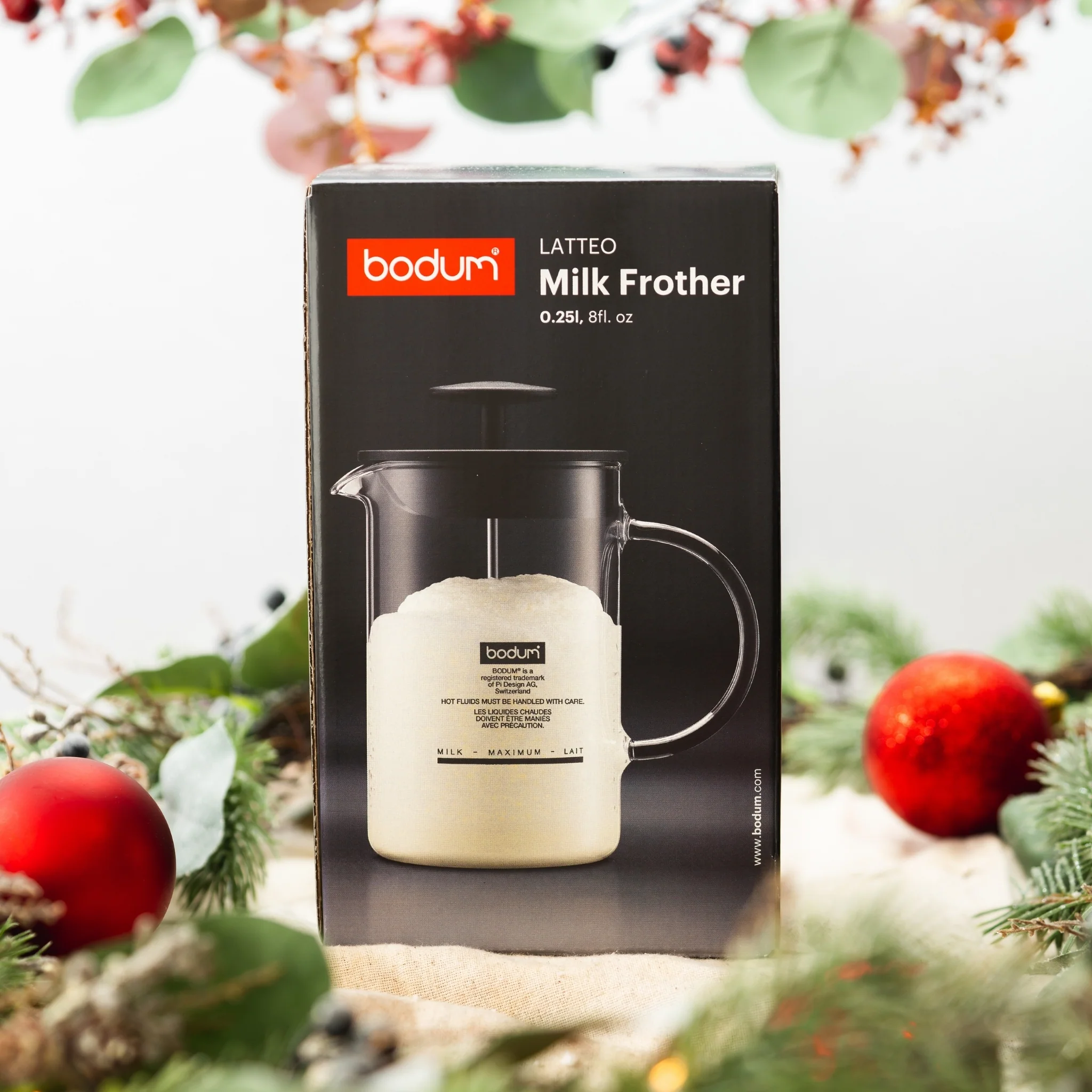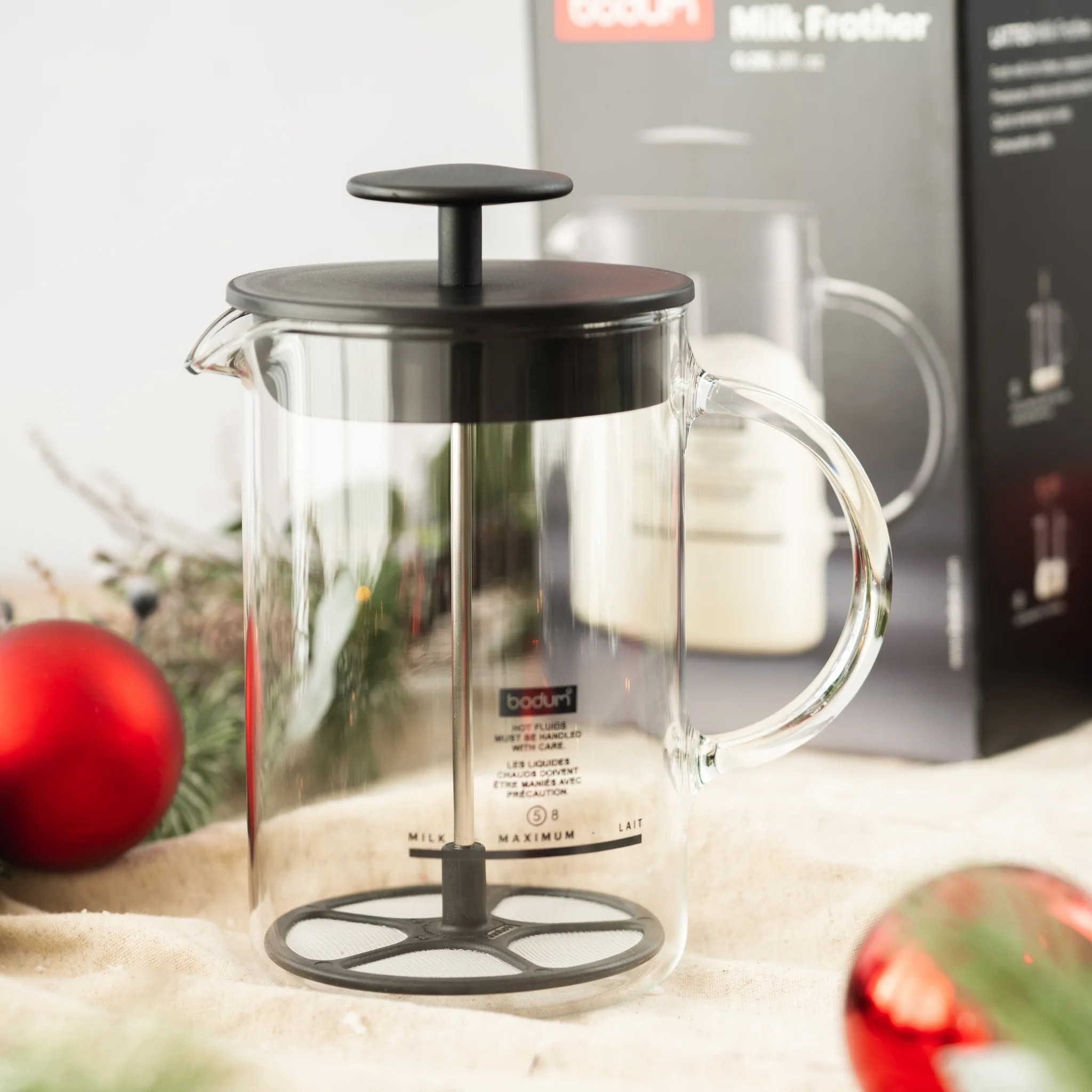 BODUM LATTEO MILK FROTHER WITH GLASS HANDLE 0.25L, 8OZ BLACK